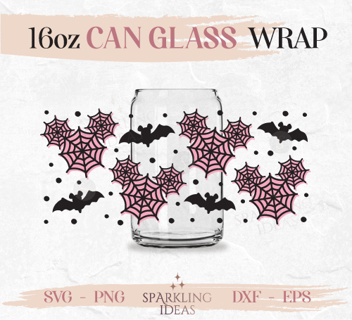 Cute Spiderweb Mouse Ears Can Glass SVG 16oz, Pink Mouse Halloween Wrap Svg, Halloween Ears Cup Wrap, Pink Spooky Halloween Svg
