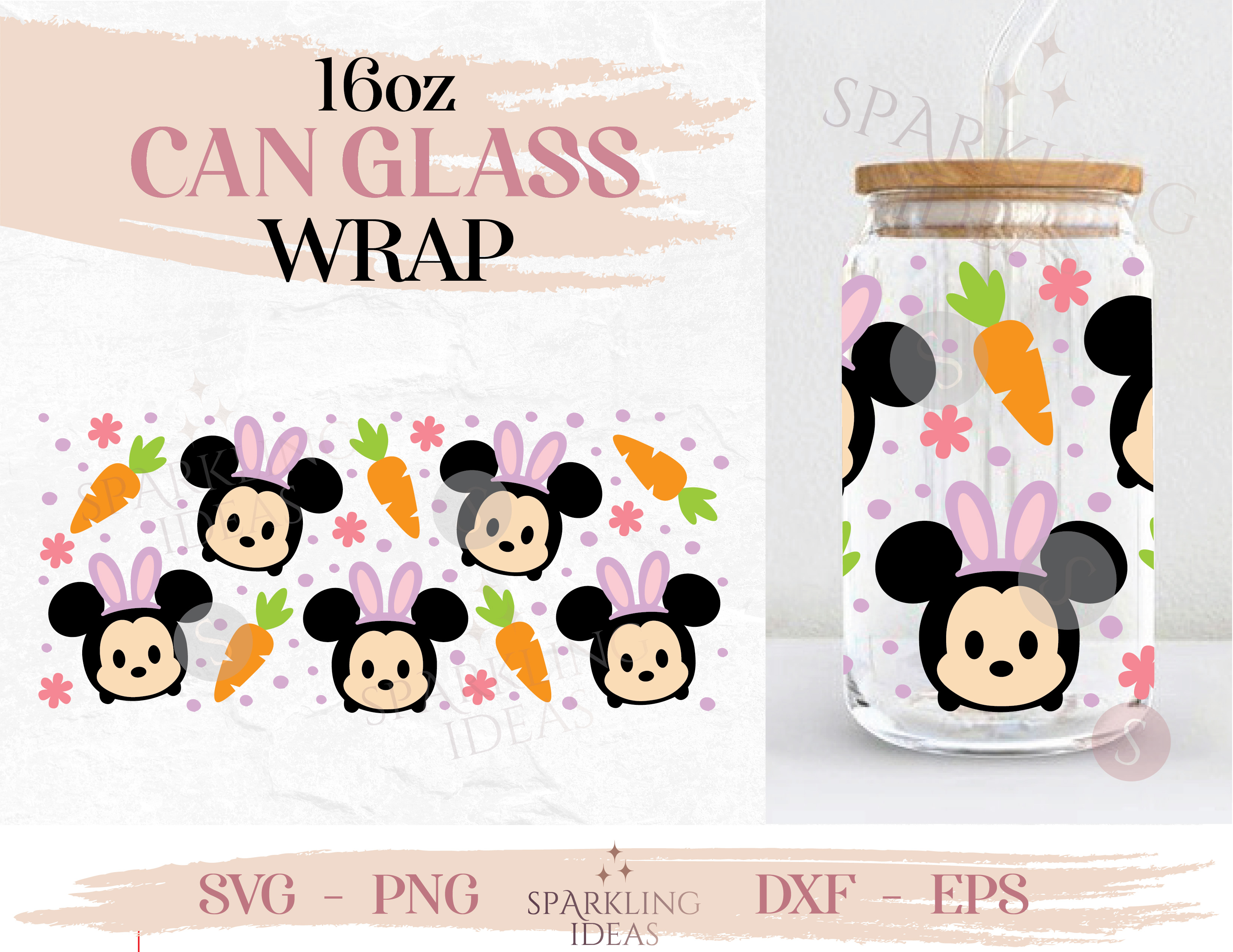 Easter Mouse Can Glass SVG, Mickey Tsum Tsum Easter Bunny Wrap Svg, Easter Ears Wrap svg