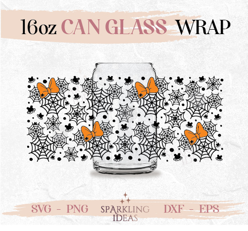 Mouse Spider Halloween Can glass wrap SVG 16oz, Halloween Mouse Ears Can glass Svg, Spooky Season Beer Glass Svg, Halloween Spiderwebs Wrap Svg