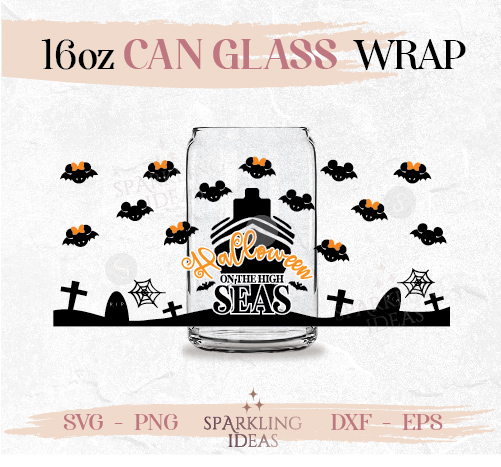 Halloween on the High Seas Can glass SVG 16oz, Mouse Halloween Cruise Glass Svg, Cruise Line Wrap svg, Spooky Svg