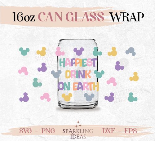 Happiest drink on Earth Can glass wrap SVG 16oz, Mouse Head Glass Svg, Retro Mouse Ears Svg