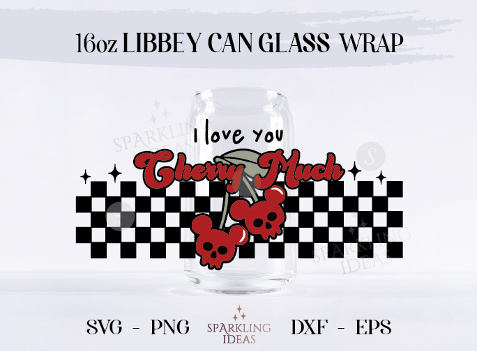 I love you Cherry Much Can Glass Wraps Svg, Valentines Svg, Mouse Valentine Svg, Retro Valentines Svg, Cute Mouse Cherry svg, 16 oz libbey glass can