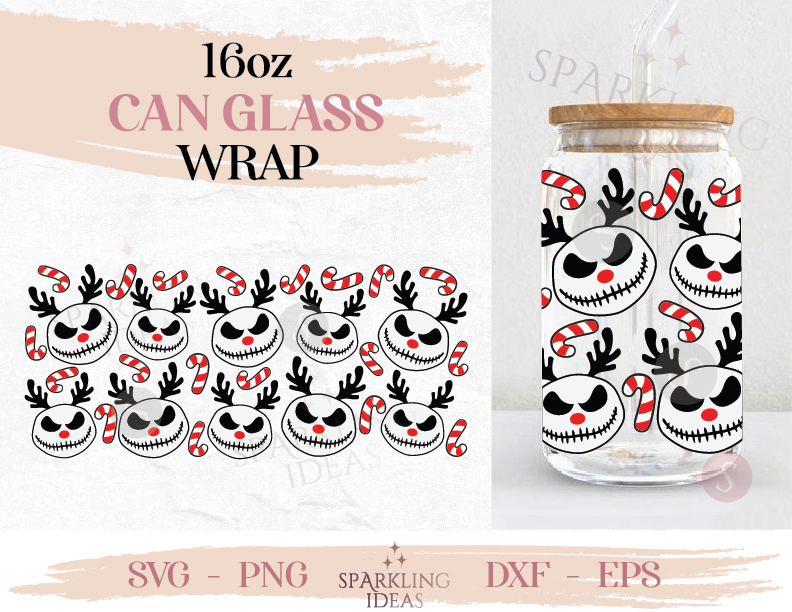 Jack Reindeer Can glass SVG 16oz, Christmas Jack Glass Svg, Nightmare Christmas Wrap Svg, Skellington Beer Glass SVG, Reindeer Christmas Wrap Svg