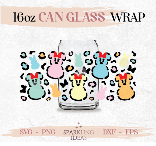 Leopard Minnie Peep Can Glass SVG, Easter Bunny Cut File Svg, Happy Easter Holiday Animal Print Wrap Svg