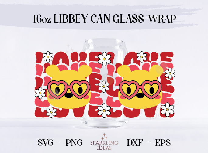 Love Pooh LIBBEY Can glass wrap SVG 16oz, Valentines Libbey Glass Svg, Love Wrap svg, Mouse Valentine’s day svg