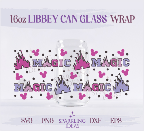 Magic Can glass wrap SVG 16oz, Magical Castle Libbey Glass Svg, Mickey Ears Wrap Svg