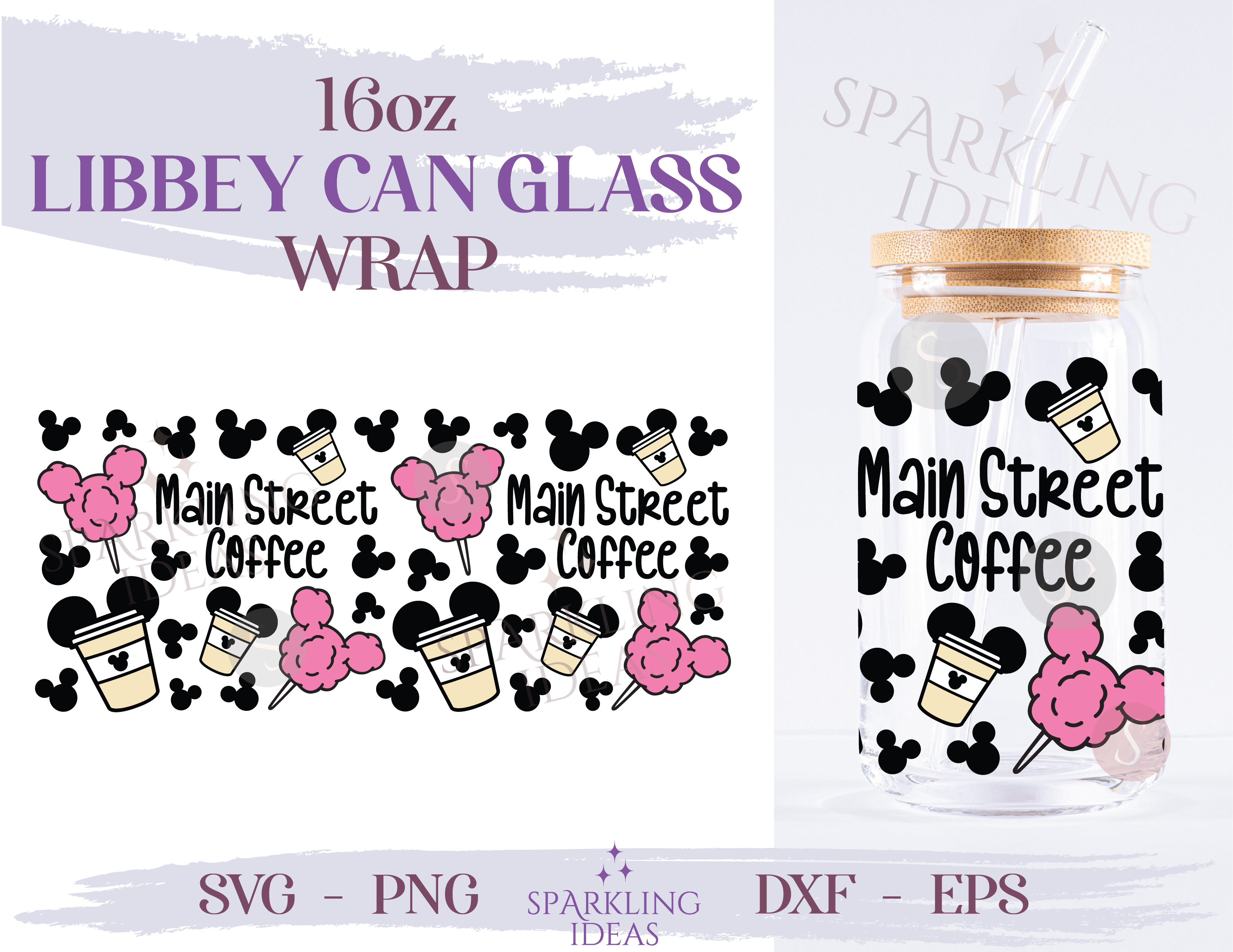 Main Street Coffee Can Glass 16oz, Love Coffee Libbey Glass Svg, Mickey Cotton Candy Wrap Svg, Mickey Ears Svg.