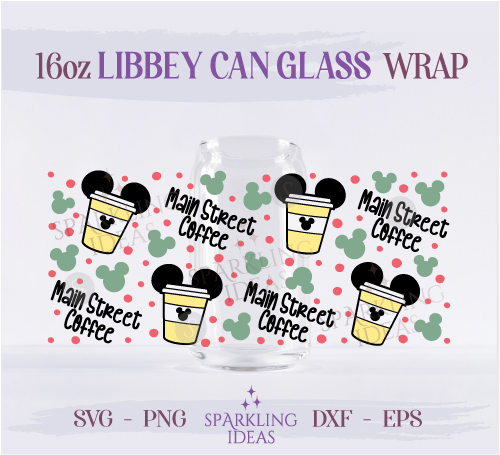 Main Street Coffee Ears Can Glass 16oz, Love Coffee Libbey Glass Svg, Mouse Coffee Cup Ears Wrap Svg