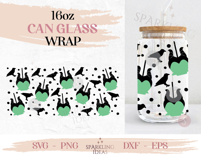 Maleficent Apple Halloween Can glass wrap SVG 16oz, Caramel apple Inspired Glass Svg, Halloween Villains Candy Wrap Svg
