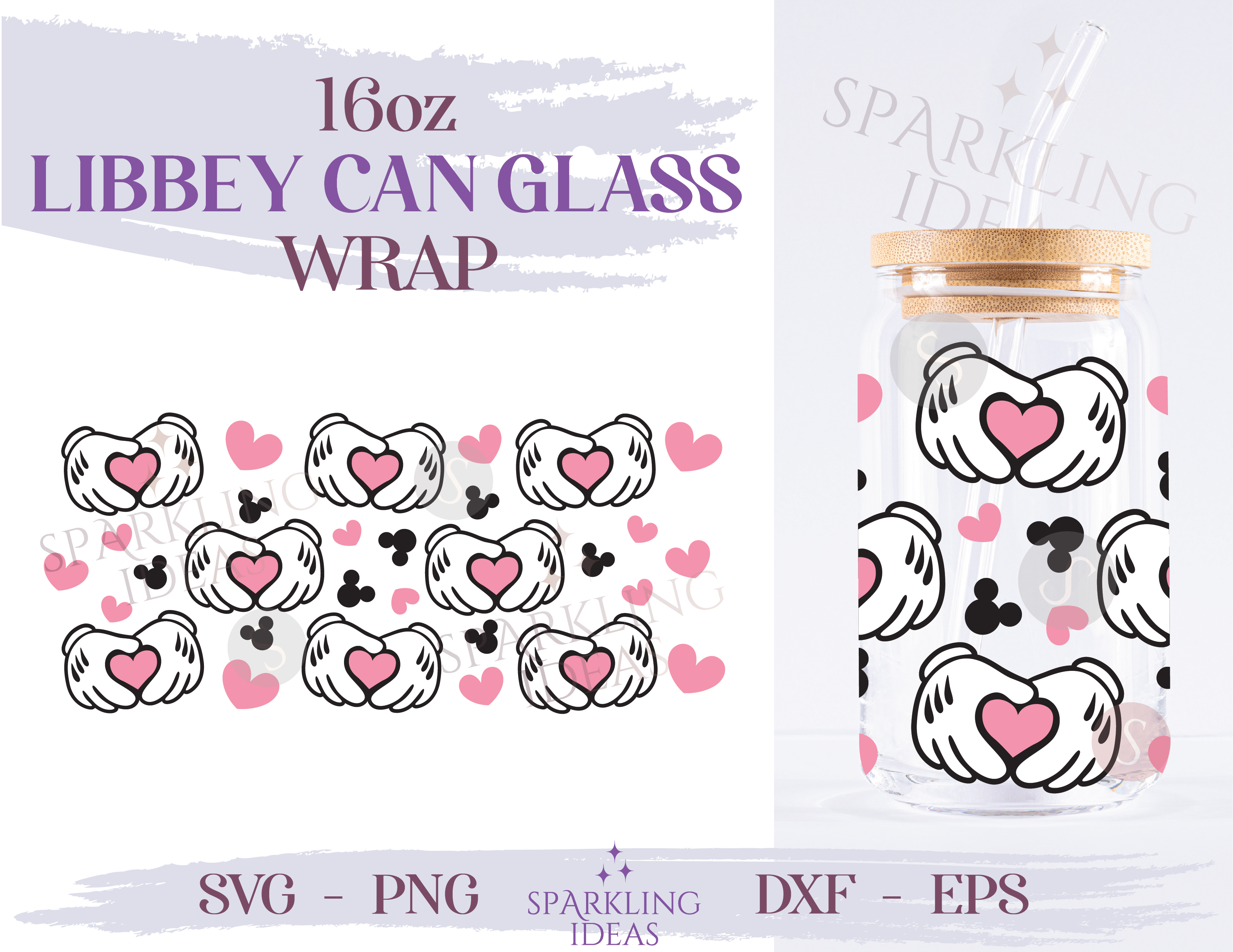 Mickey Love Sign Can Glass 16oz SVG, Mickey Gloves Heart Libbey Can Svg, Magical World Love Wrap Svg