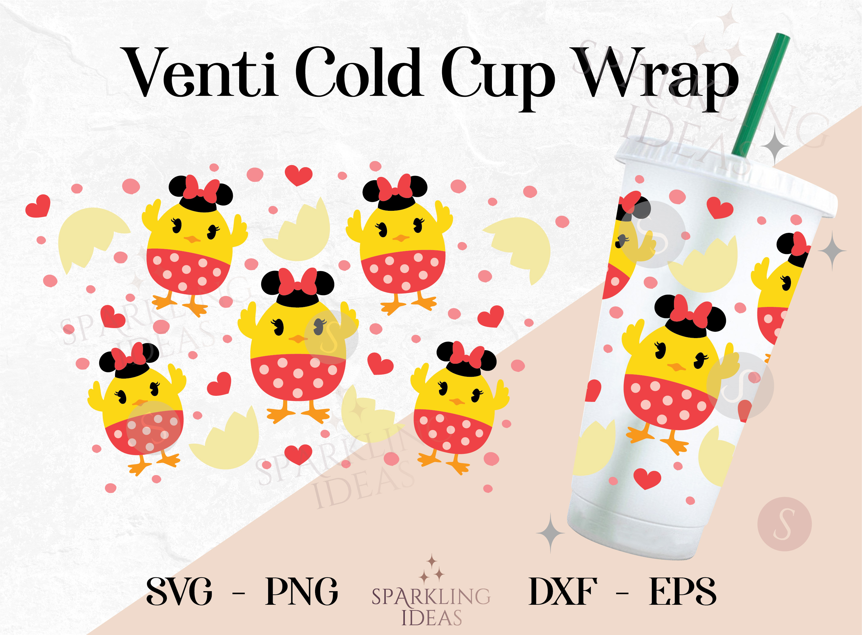 Minnie Chick Venti Cup 24oz Wrap No Hole, Mouse Easter egg chick Cold Cup Svg, Easter Mouse Wrap Svg