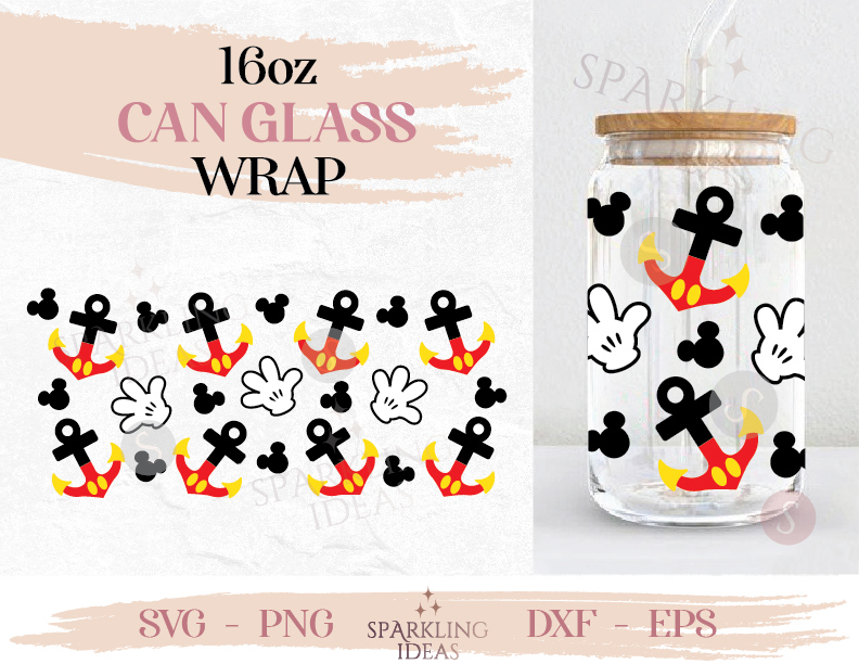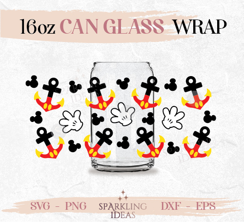 Mouse Anchor Can glass Wrap SVG 16oz, Mouse Cruise Glass Svg, Mouse Gloves Svg, Mouse Ears Wrap Svg