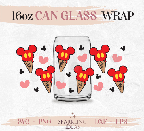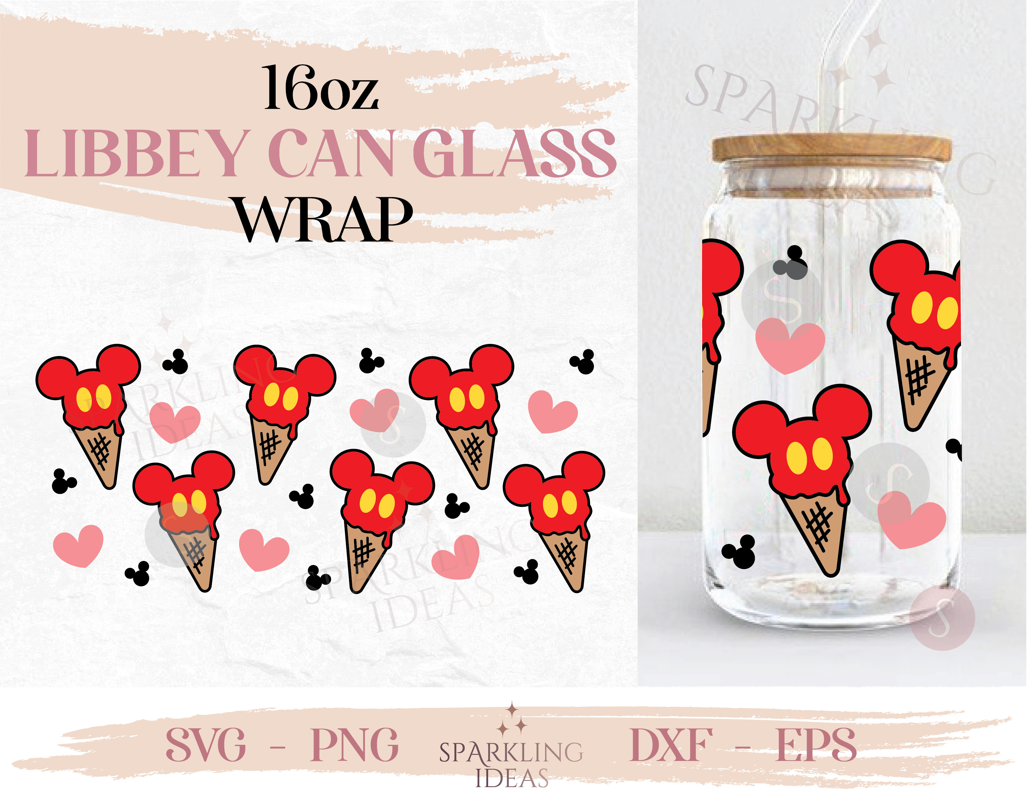Mickey Buttons Ice Cream Can glass SVG 16oz, Mouse Ears Ice Cream Love Glass Svg, Summer Snack Mouse Inspired Wrap Svg