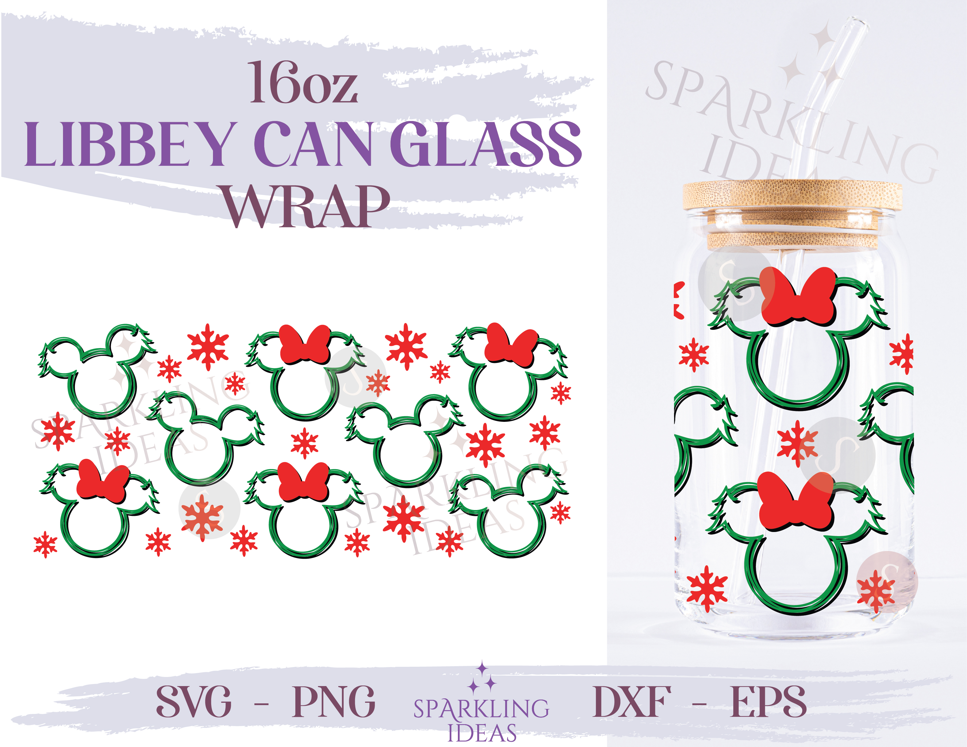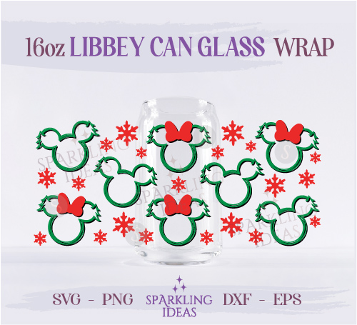 Mouse Christmas Tree Ears Can Glass 16oz SVG, Christmas Mouse Ears Libbey Glass Svg, Magical Christmas Wrap Svg