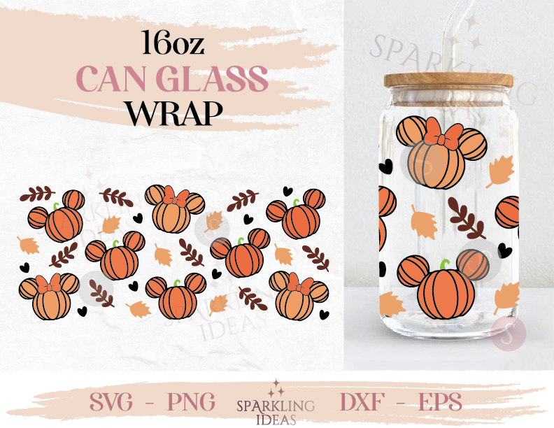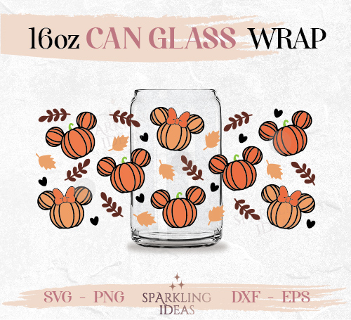 Mouse Ears Fall Can glass wrap SVG 16oz, Mouse Ears Pumpkin Glass Can Svg, Fall Mouse Ears Can Wrap Svg, Pumpkin SVG Wrap, Fall Pumpkin Beer Glass SVG, Fall Autumn Leaves SVG, Pumpkin Season SVG