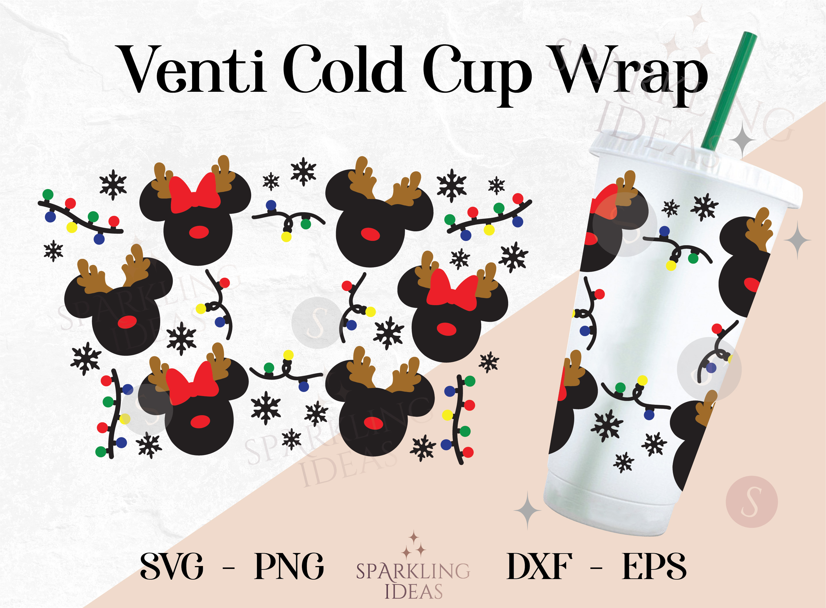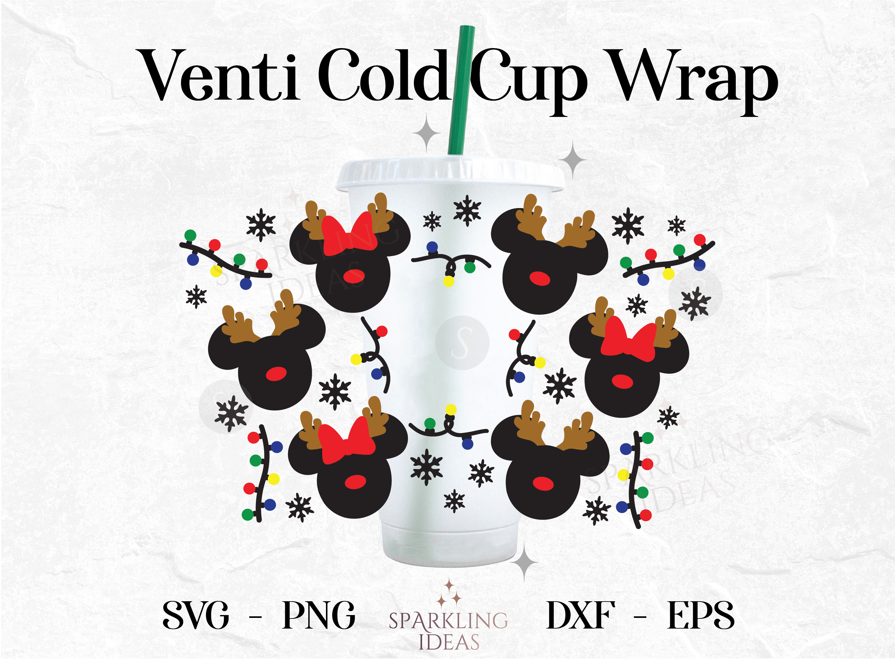 Mouse Ears Reindeer Ears Wrap For Cold Cups 24oz SVG, Christmas Lights Cold Cup Svg, Christmas Reindeer Wrap Svg, Mouse Ears Christmas Svg