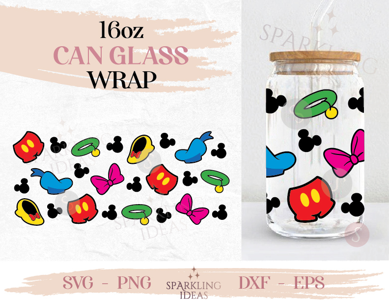 Mouse Friends Can glass SVG 16oz, Mouse Ears Club Glass Svg, Mouse Pants Wrap Svg