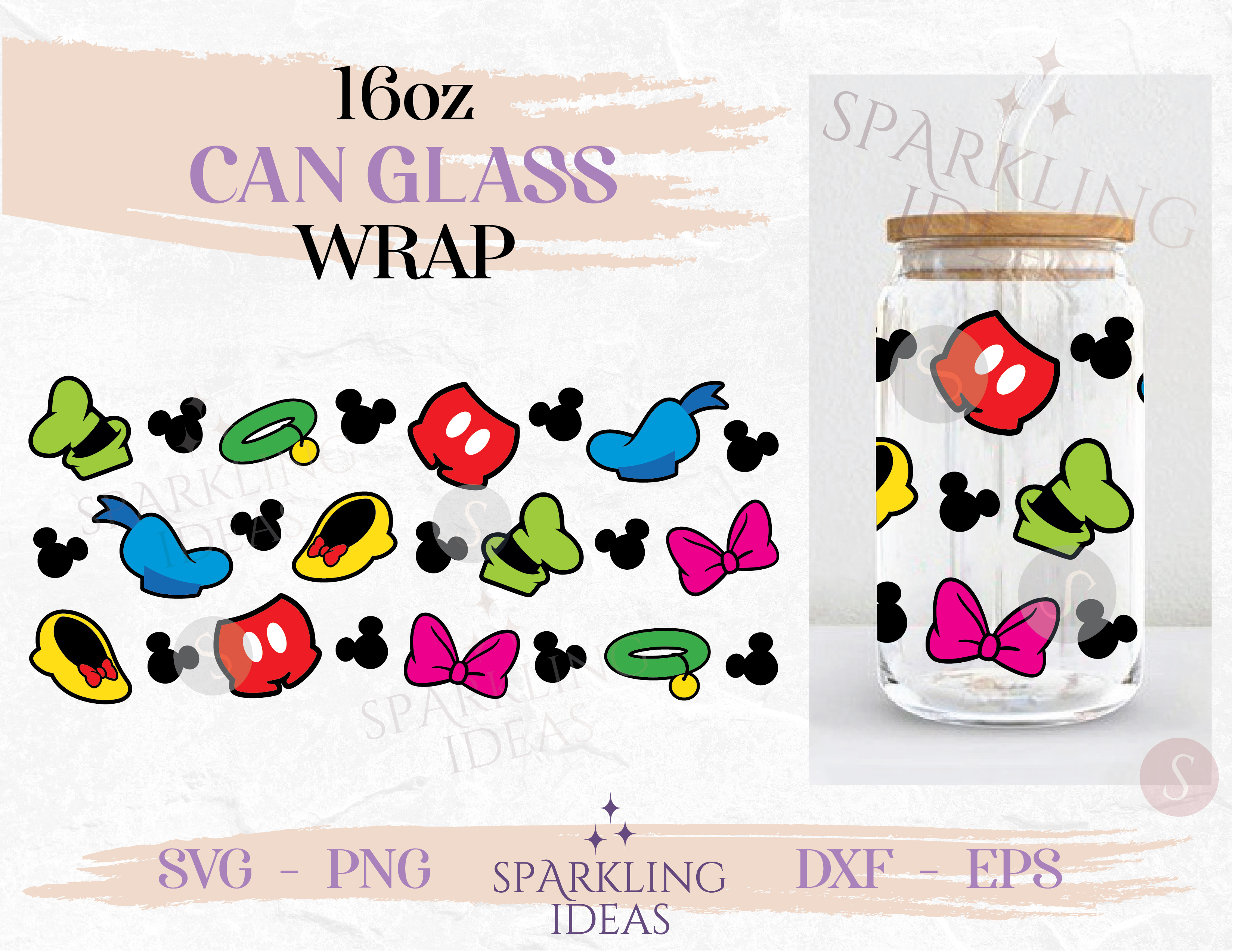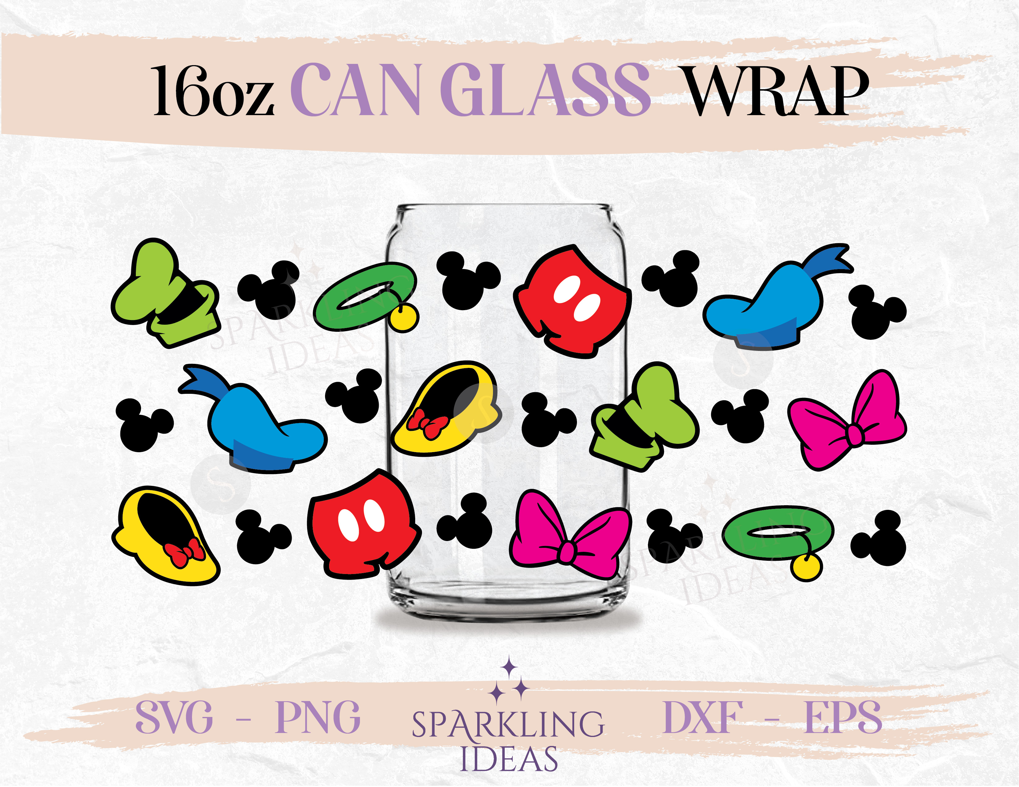 Mouse Friends Can glass SVG 16oz, Mouse Ears Club Glass Svg, Mouse Pants Wrap Svg, Minnie Shoes svg, Goofy Hat svg, Donald Hat svg, Daisy Bow svg, Pluto Collar Svg