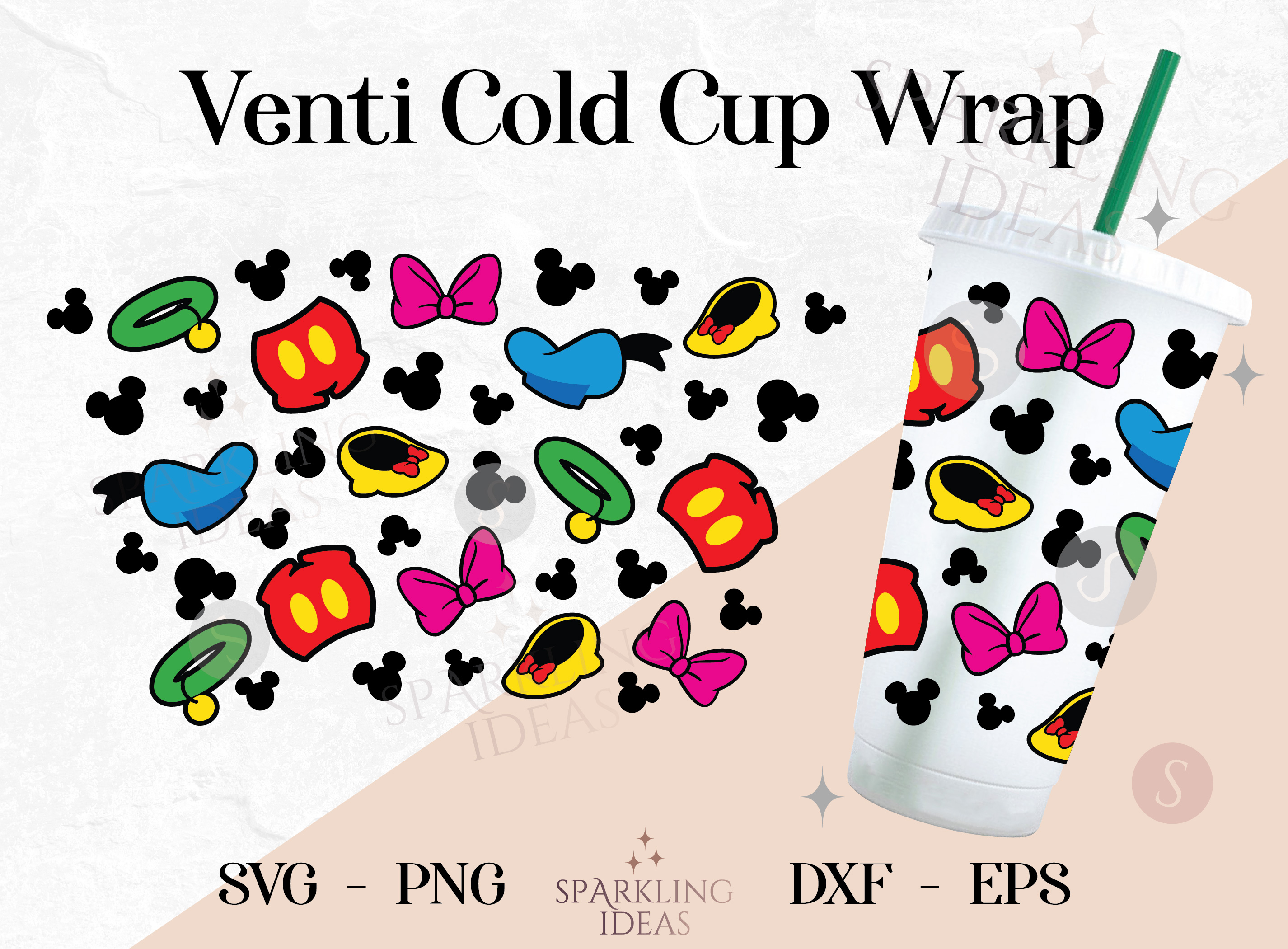 Mouse Friends Venti Cup 24oz Wrap No Hole, Disney Club Inspired Cold Cup Svg, Mickey Pants Minnie Bow Wrap Svg, Donald Hat Svg, Pluto Collar Svg, Minnie Bow Shoes