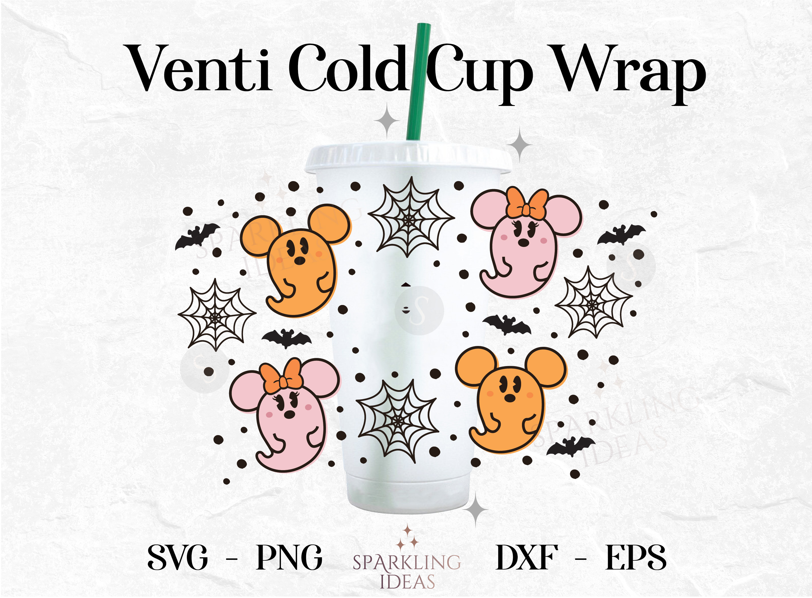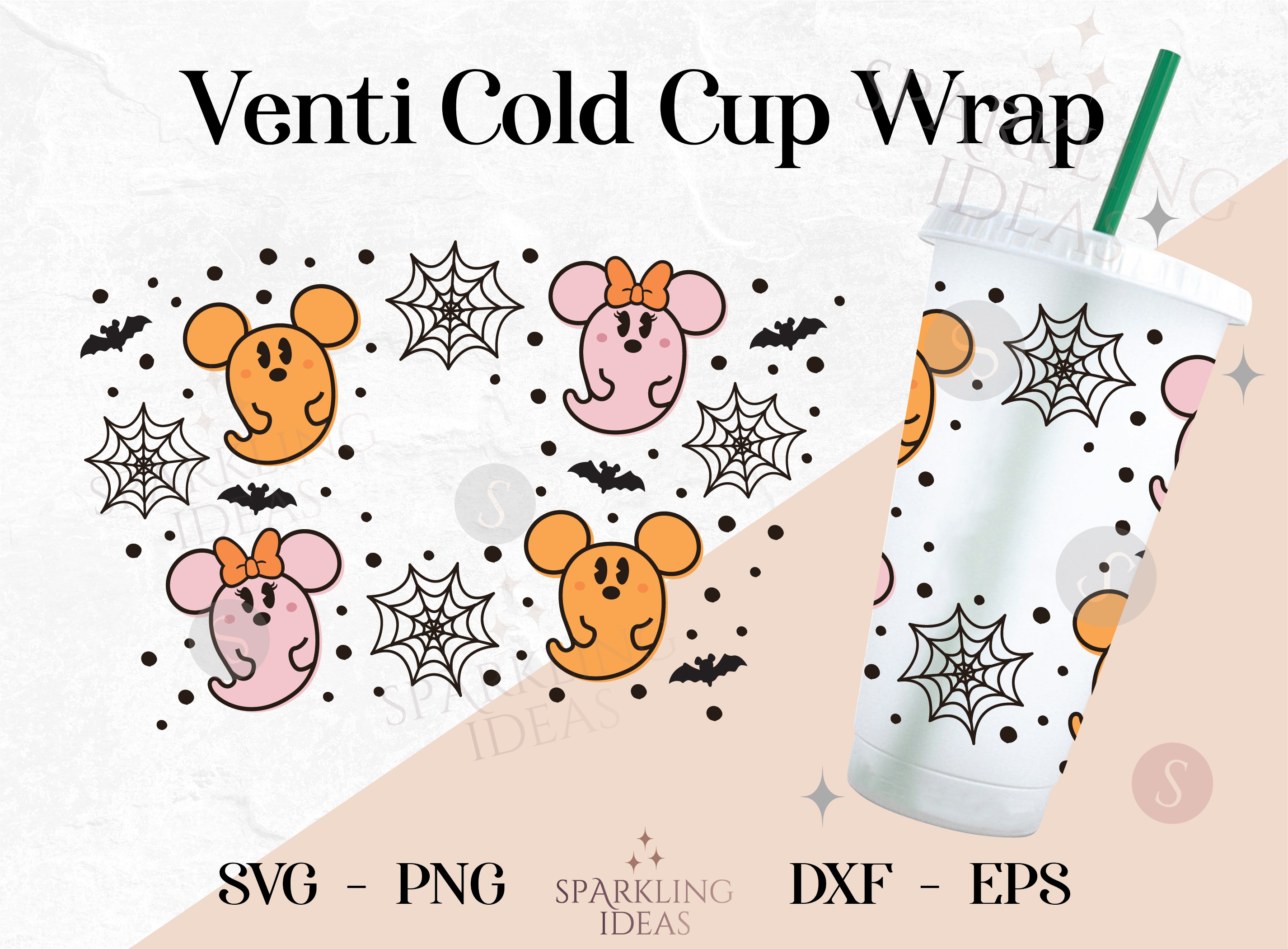 Mouse Ghost Wrap For Cold Cups 24oz SVG, Pastel Mouse Halloween Cold Cup Wrap Svg, Pastels Spooky Halloween Svg, Halloween Mouse Ears SVG