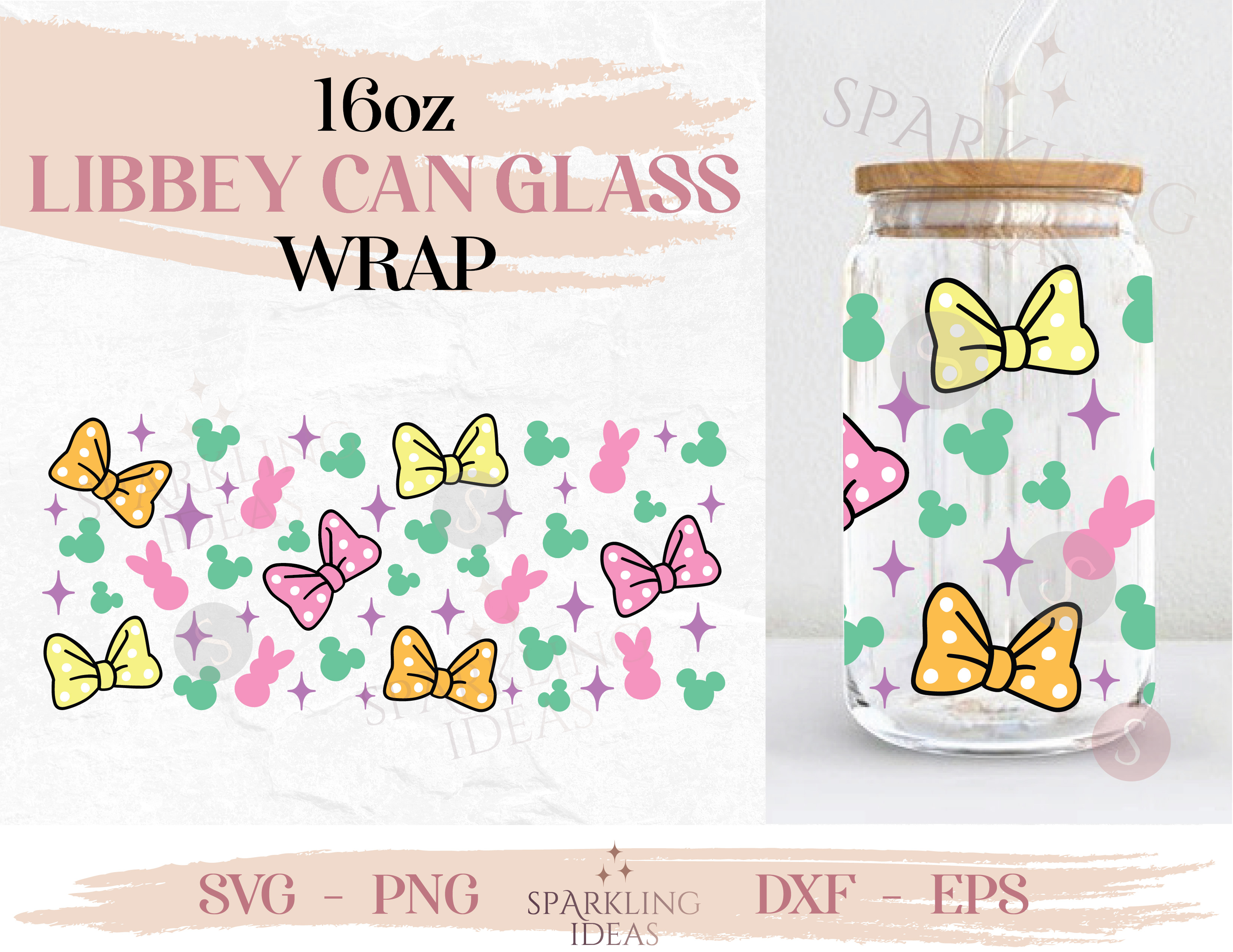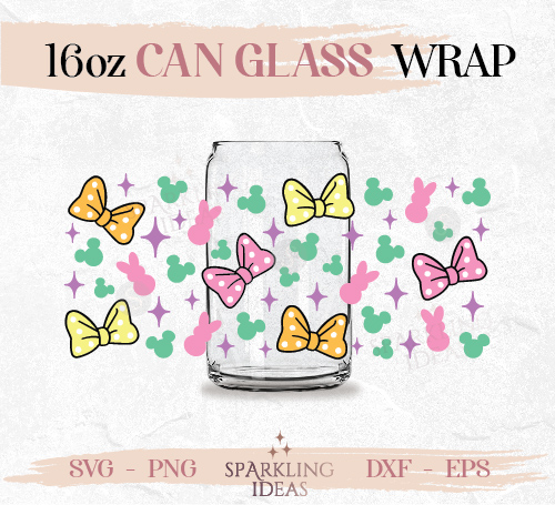 Mouse Girls Bow Can glass wrap SVG 16oz, Easter Bunny Glass Svg, Mouse Easter Inspired Wrap Svg