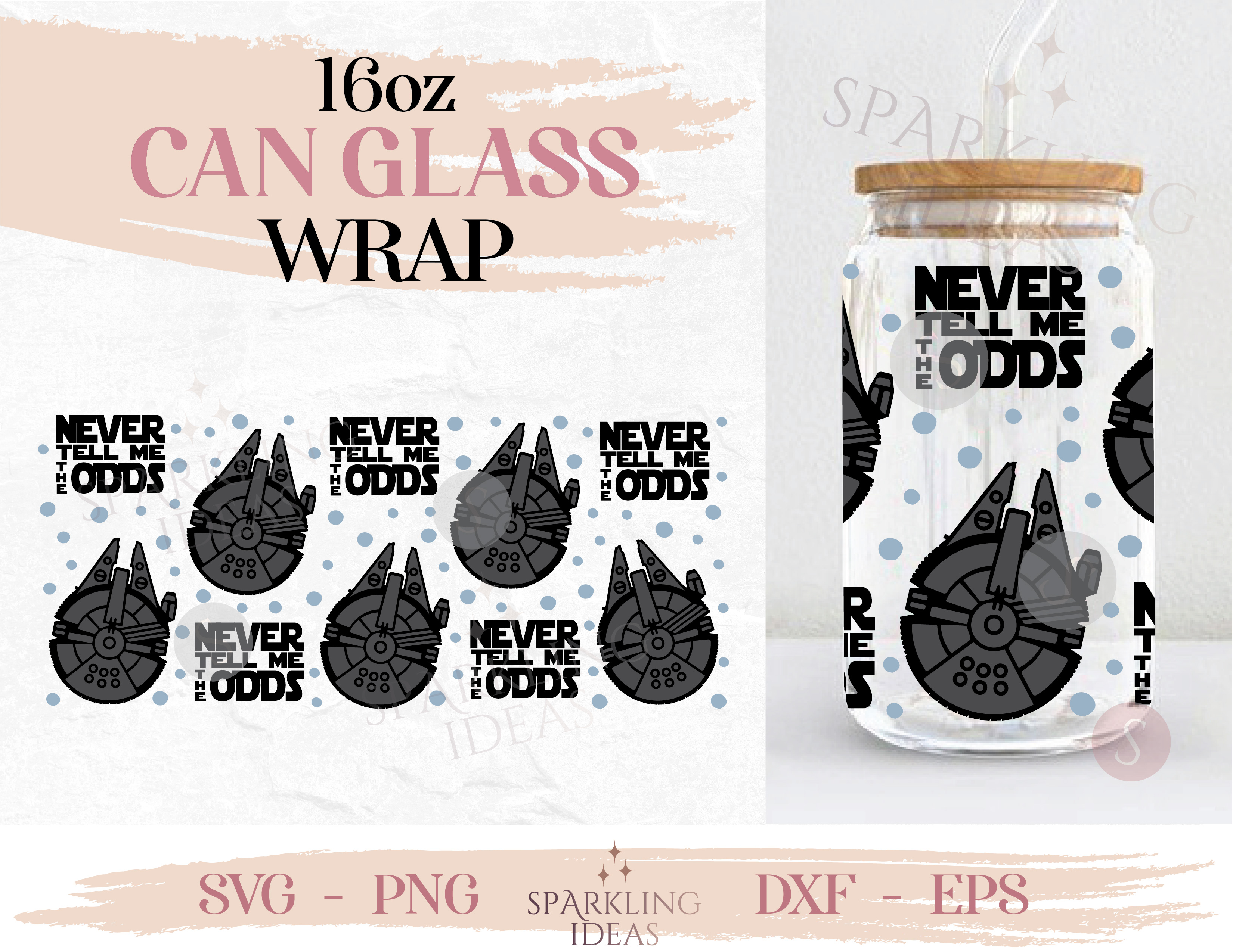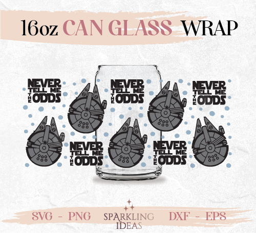 Never tell me the Odds Can glass wrap SVG 16oz, Millennium Falcon Can Glass Svg, Rebel Svg