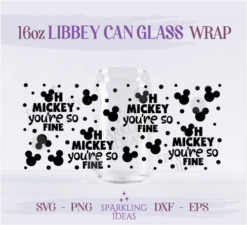 Oh Mickey You’re so Fine Can Glass 16oz SVG, Mouse Ears Libbey Glass Svg, Coffee Cup Mouse Wrap Svg