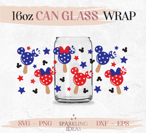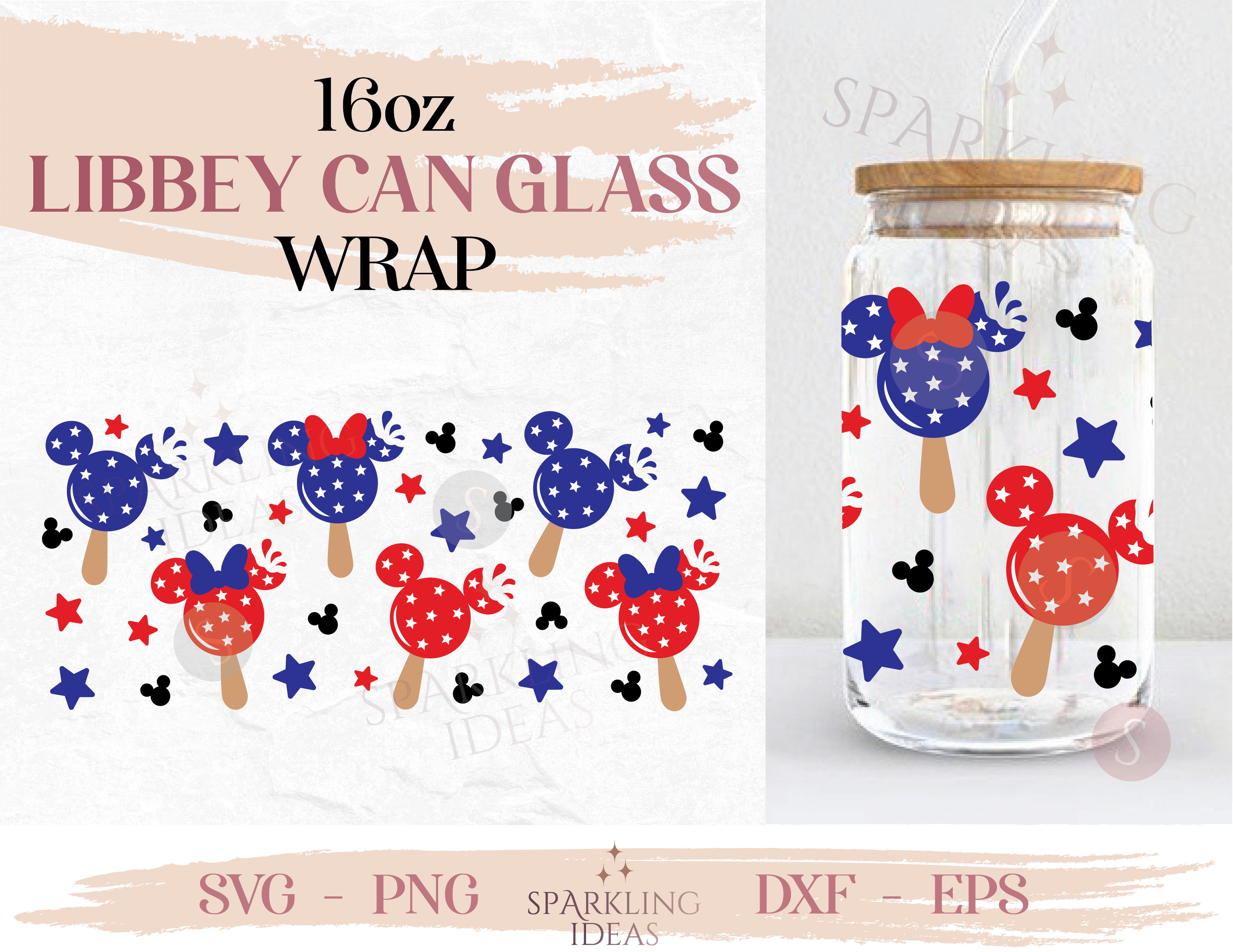 Patriot Popsicle Mickey Ears Glass SVG 16oz, Mouse Ice Cream Glass Svg, Independence Day Wrap Svg, July 4th Svg
