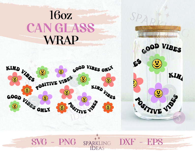 Positives Vibes Mouse Flowers Can glass wrap SVG 16oz, Groovy Flowers Glass Can Svg, Kind Vibes Ears Can Wrap Svg, Retro Mouse Ears Glass SVG, Mouse Happy Face Beer Glass SVG, Mouse Flower Smiley SVG