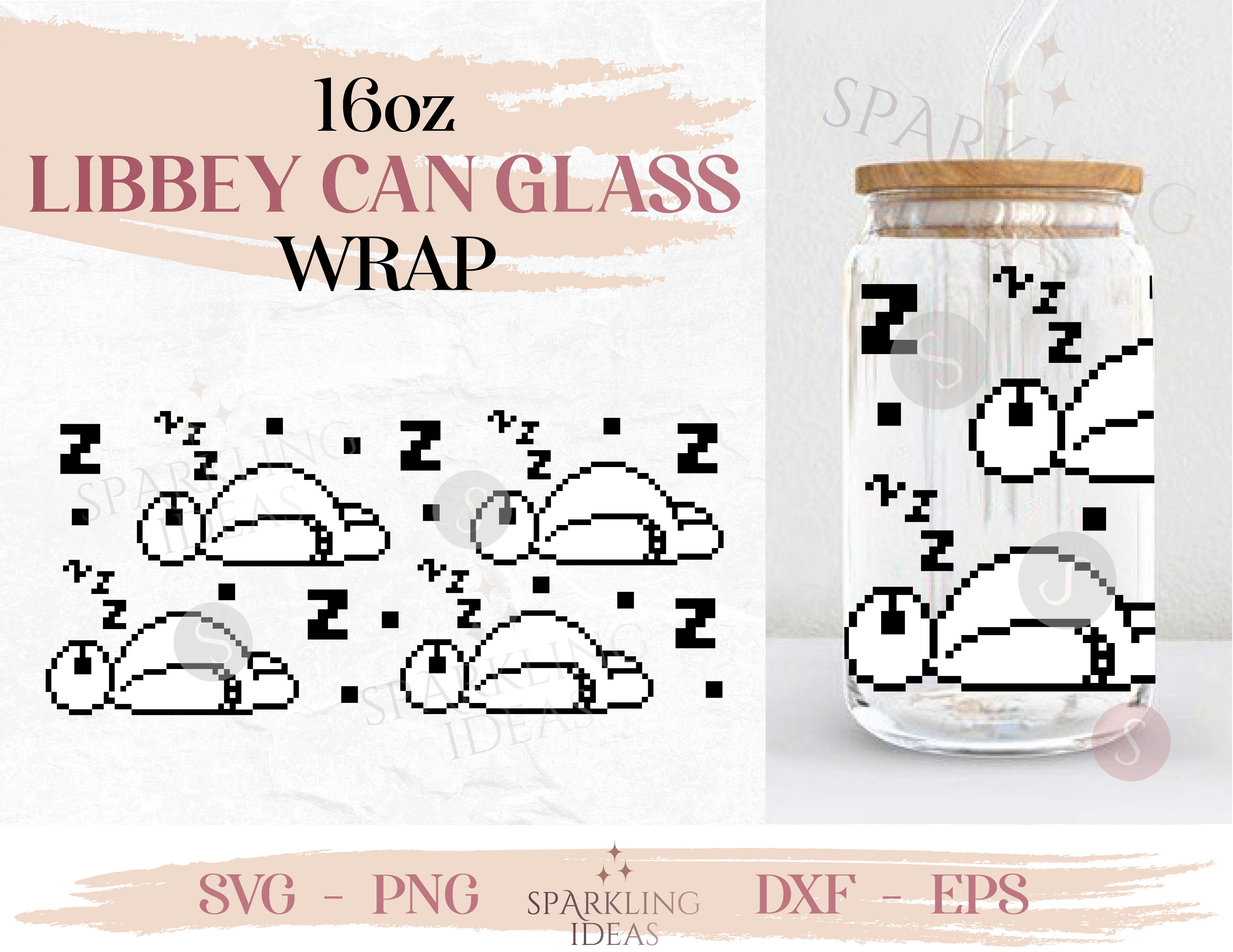 Sleeping Baymax Can glass SVG 16oz, Big Hero Glass Svg, Balalala Robot Wrap Svg, Pixelated Baymax Svg