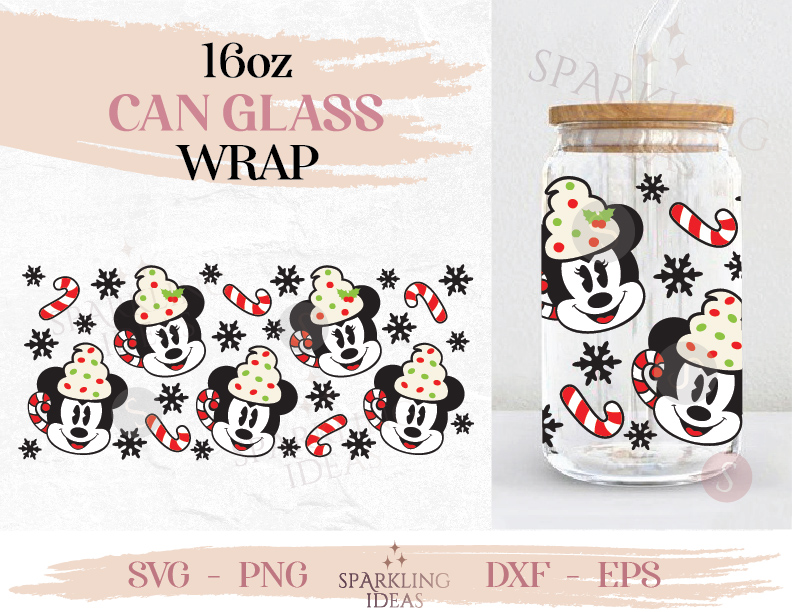 Mouse Ears Hot Cocoa Can glass SVG 16oz, Mouse Ears Christmas Glass Svg, Mouse Hot Drink Mug Glass Svg, Holiday Christmas Wrap Svg