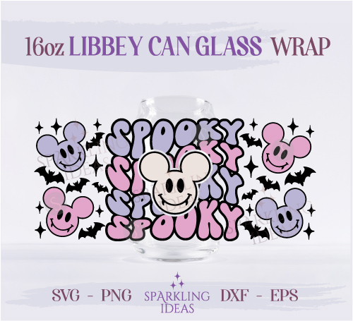 Spooky Mickey Ears Can Glass 16oz SVG, Mickey Dracula Retro Halloween Ears Libbey Glass Svg, Magical Halloween Wrap Svg