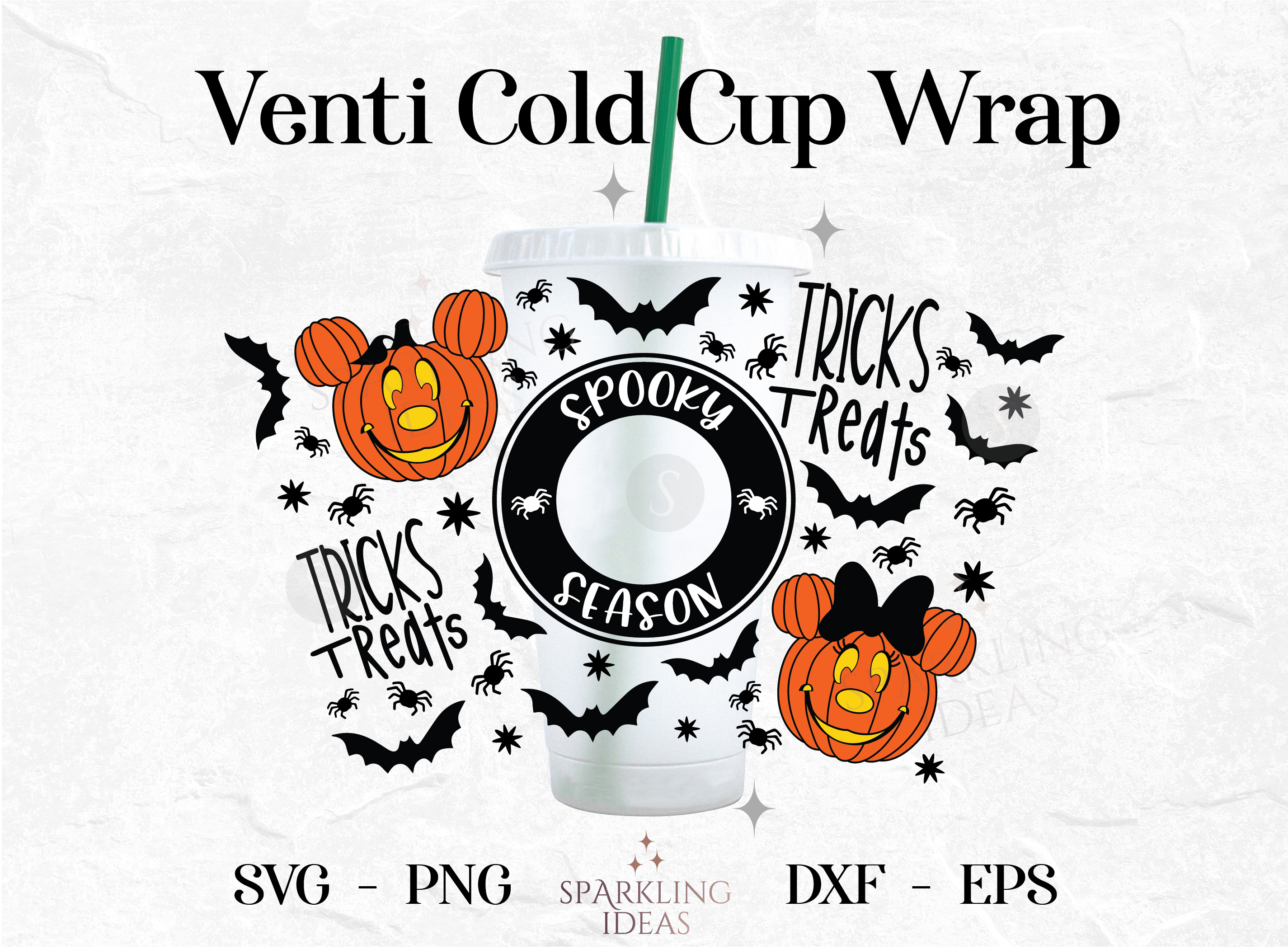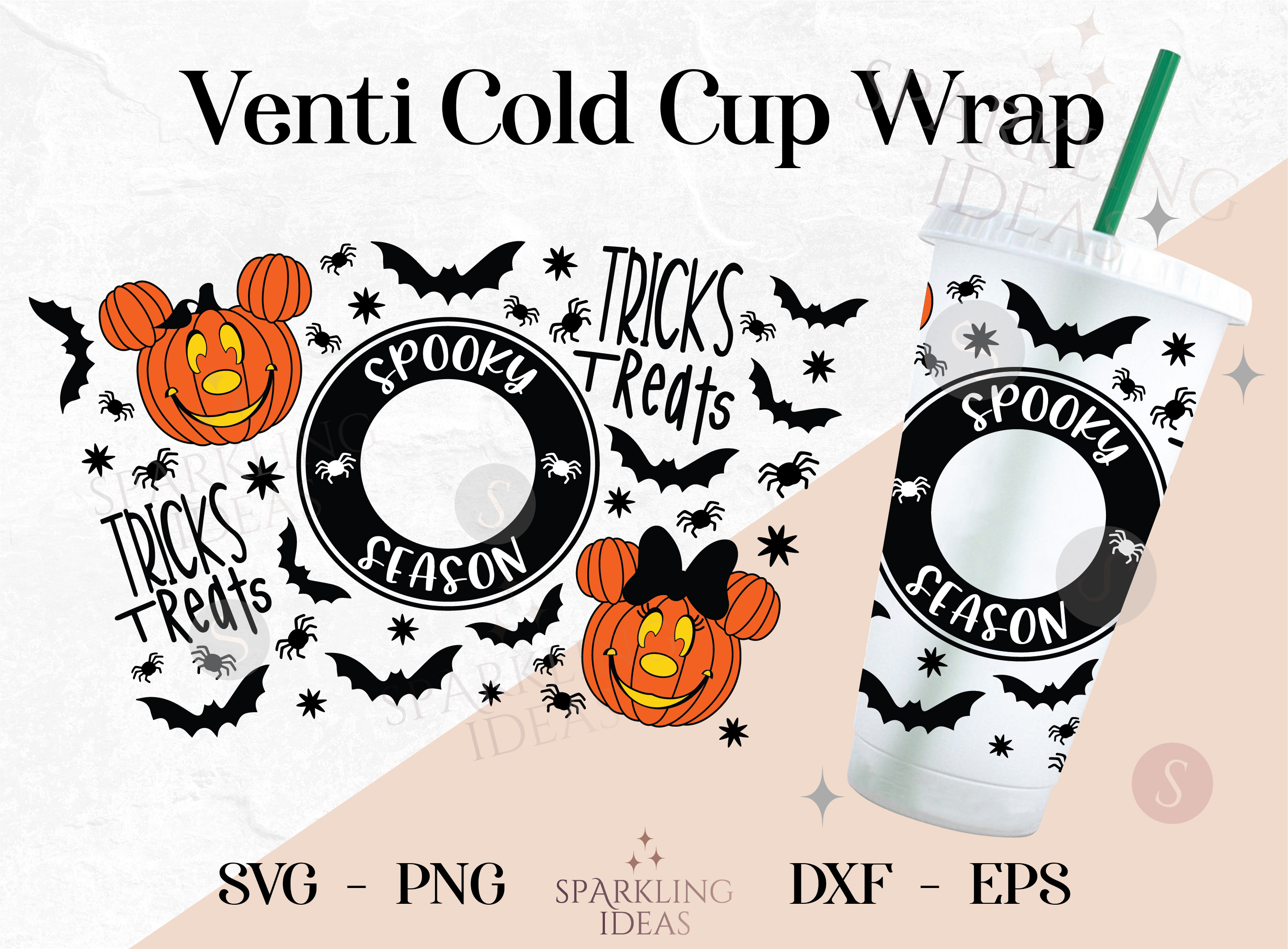 Spooky Season Wrap For Cold Cups 24oz SVG, Mouse Ears Pumpkin Cold Cup Svg, Halloween Pumpkin SVG, Trick Treat Inspired Svg, Spooky Season Wrap Svg