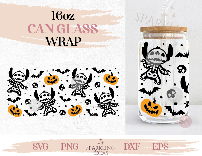 Spooky Stitch Can glass wrap SVG 16oz, Skeleton Stitch Glass Can Svg, Halloween Stitch Svg Wrap, Halloween Skeleton Glass Svg, Trick or Treat Wrap Svg