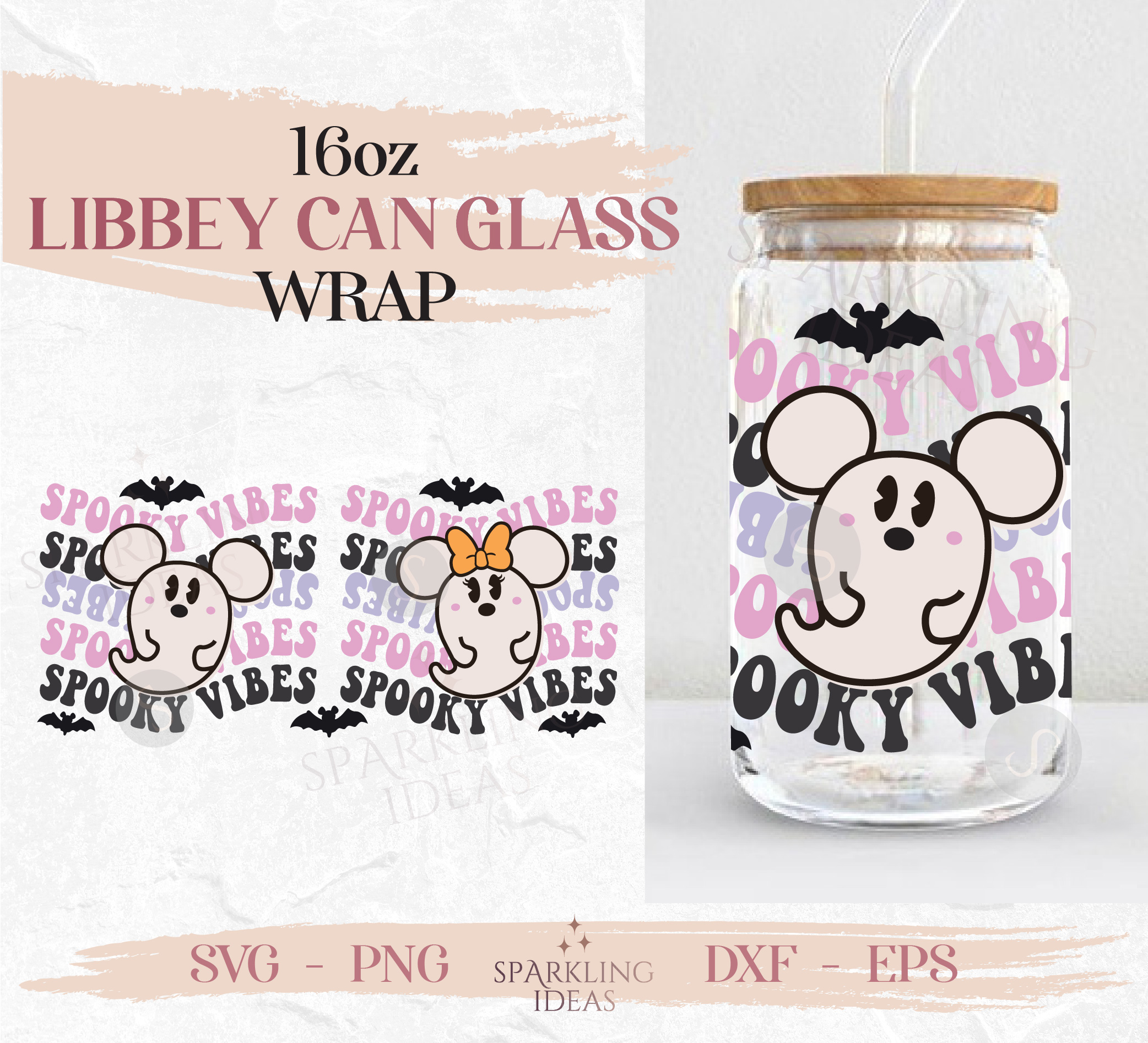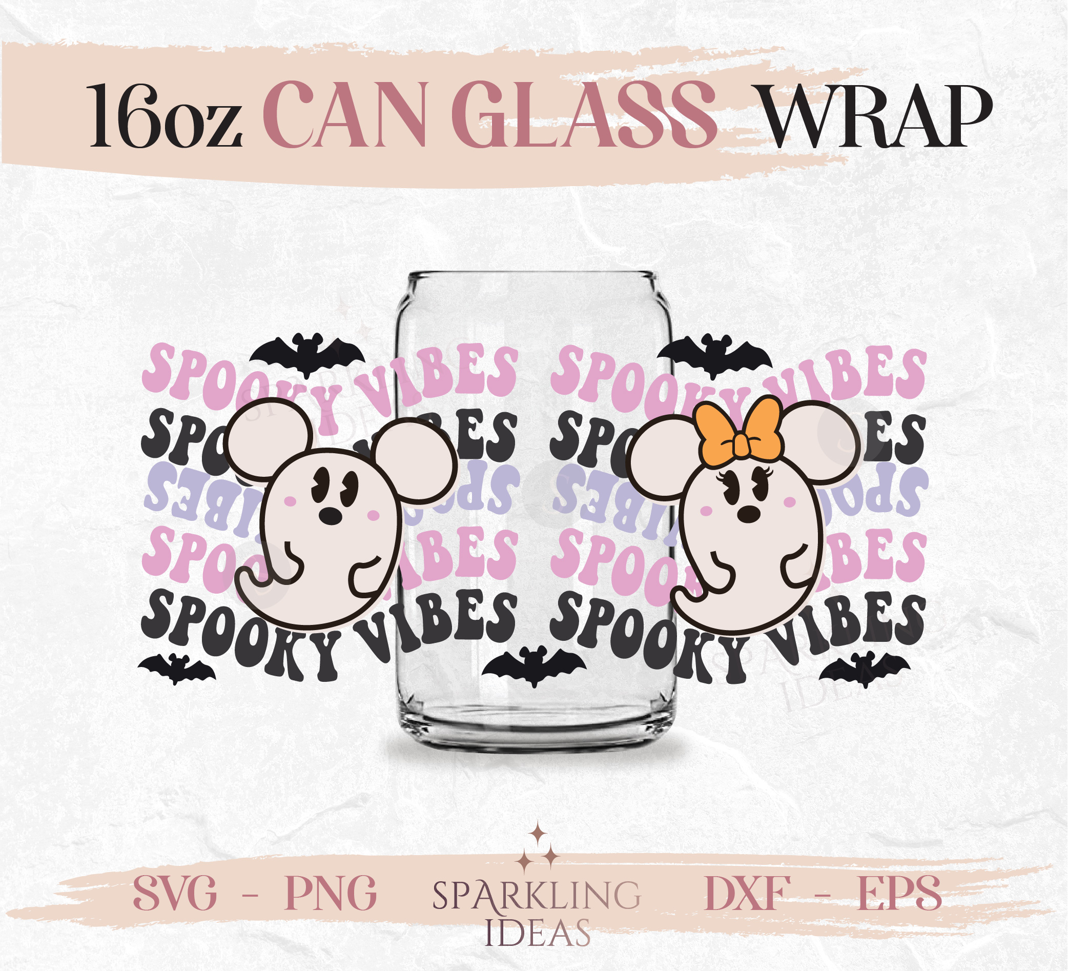 Spooky Vibes Halloween Can Glass SVG, Mickey Minnie Ghost Svg, Retro Halloween Wrap Svg, Halloween Mouse Ghost Ears Cup Wrap, Spooky Halloween Svg
