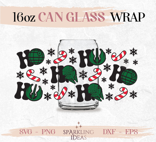 Star Christmas Can glass wrap SVG 16oz, Millennium Falcon Can Glass Svg, Ho Ho Ho Christmas Wrap Svg, Rebel Svg