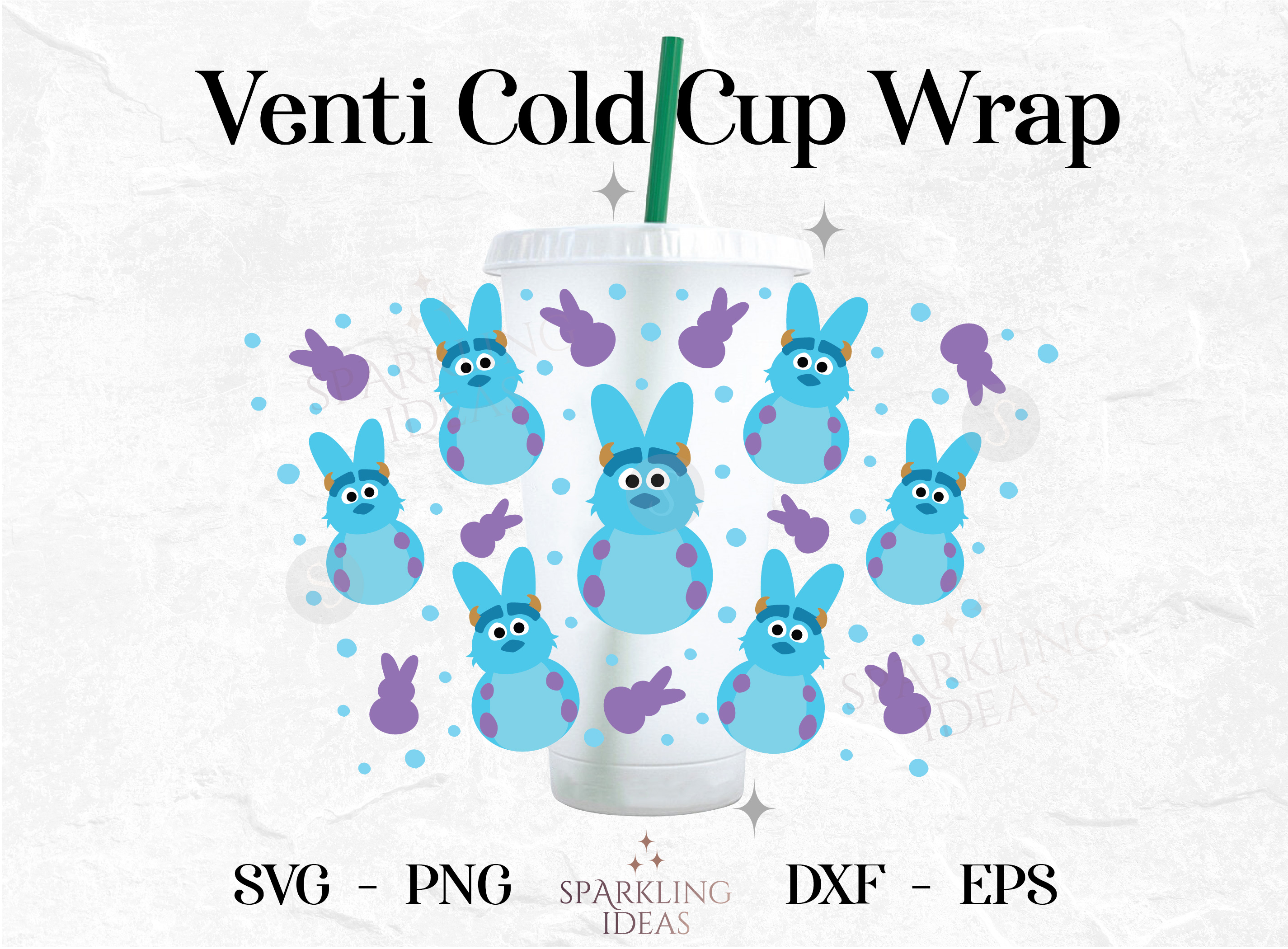 Sulley Peep Venti Cup 24oz Wrap No Hole, Easter Peeps Cold Cup Svg, Monster Inc Easter Inspired Wrap Svg