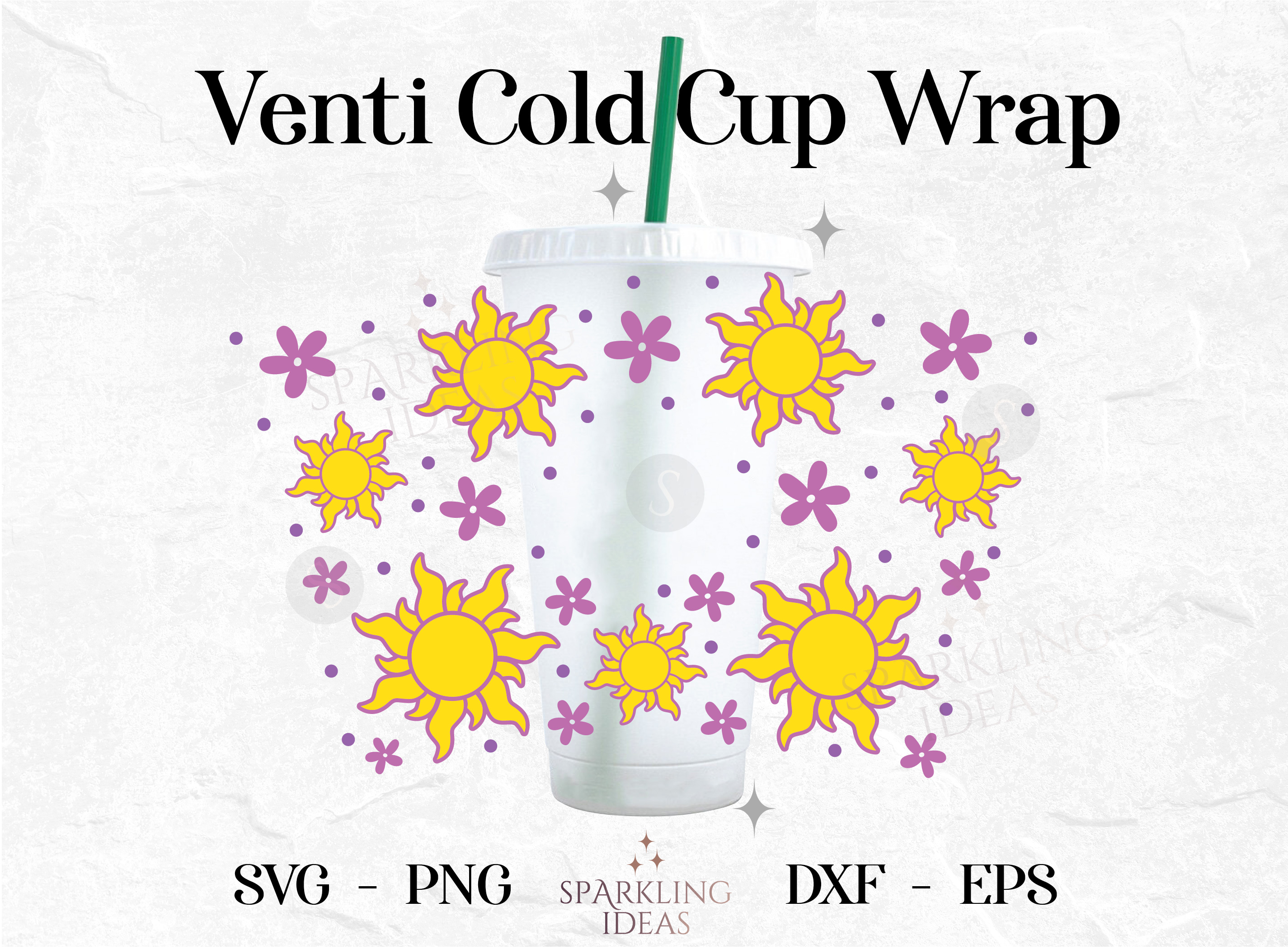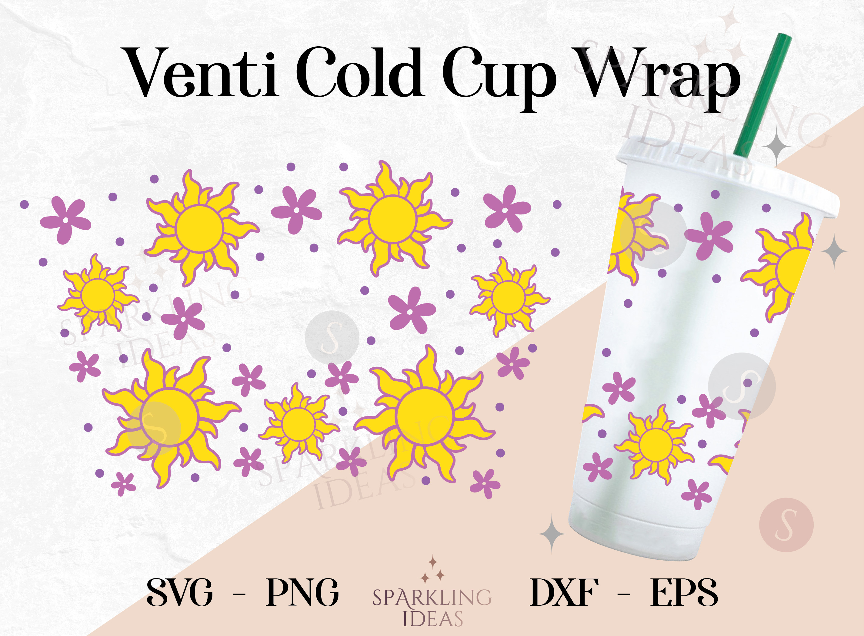Tangled Sun SVG Wrap for Cold Cup, Tangled Inspired Cold Cup Svg, Tangled Flowers Svg