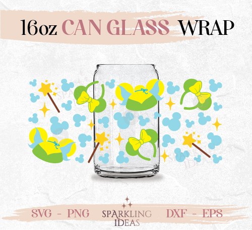 Tinker Bell Ears Can glass wrap SVG 16oz, Peter Pan Glass Svg, Princess Wrap Svg