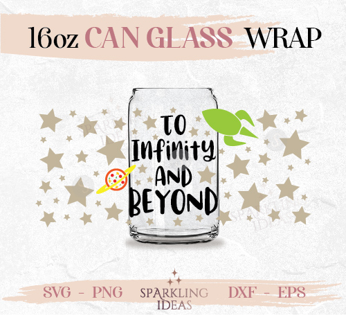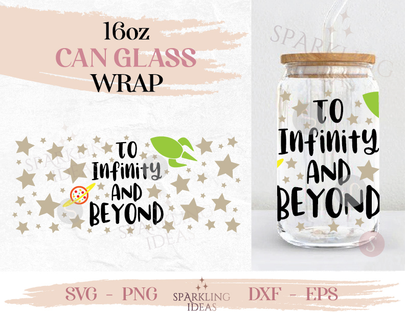 To Infinity and Beyond Can glass SVG 16oz, Buzz Glass Svg, Rocket Glass SVG, Toy Inspired Wrap Svg