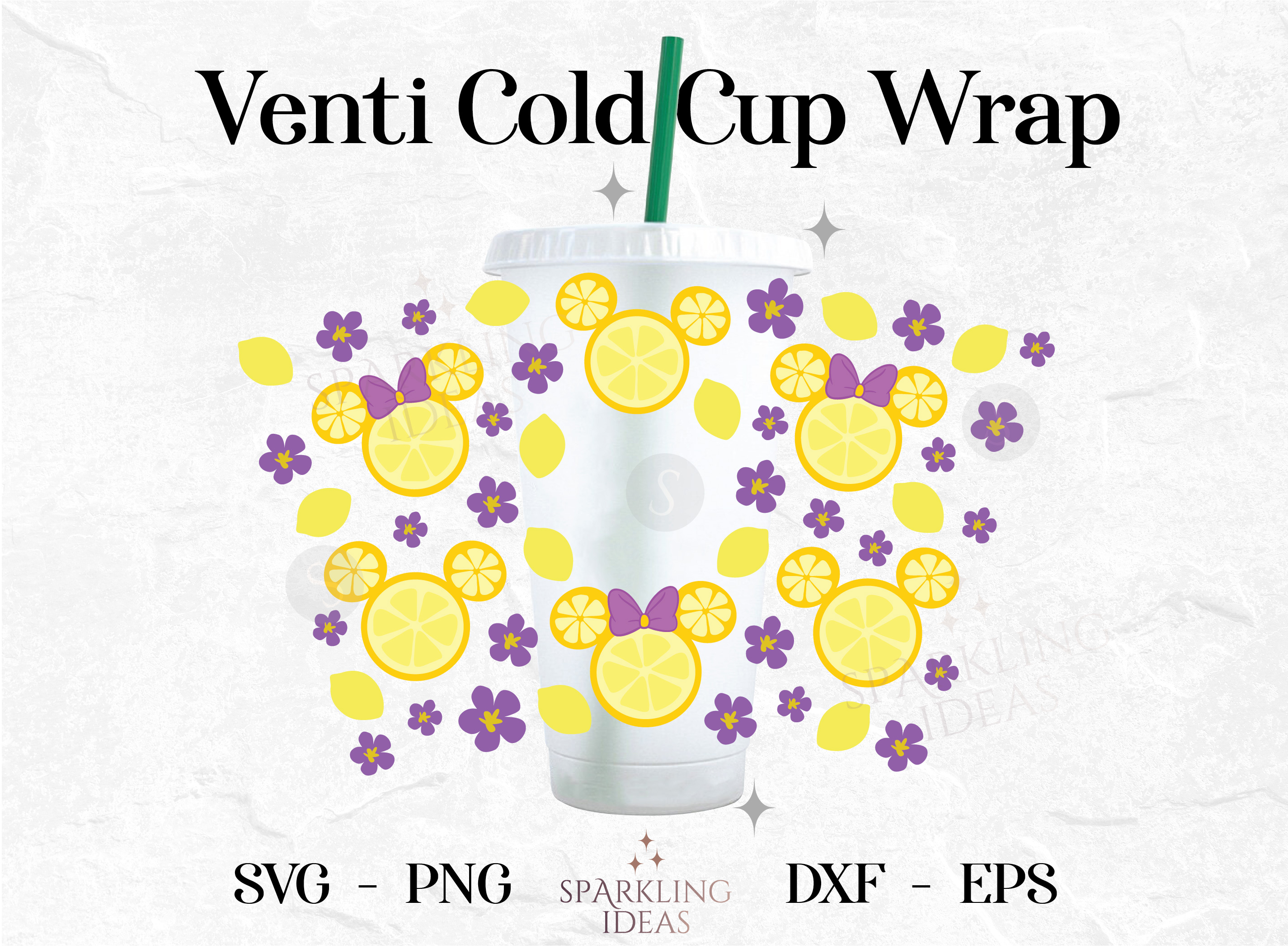 Violet Lemonade Mouse Ears Wrap For Cold Cups 24oz SVG, Lemon Mouse Ears Cold Cup Svg, Flower and garden Festival Svg, Violet Flower Wrap Svg, Summer Fruit Mouse Ears Wrap Svg